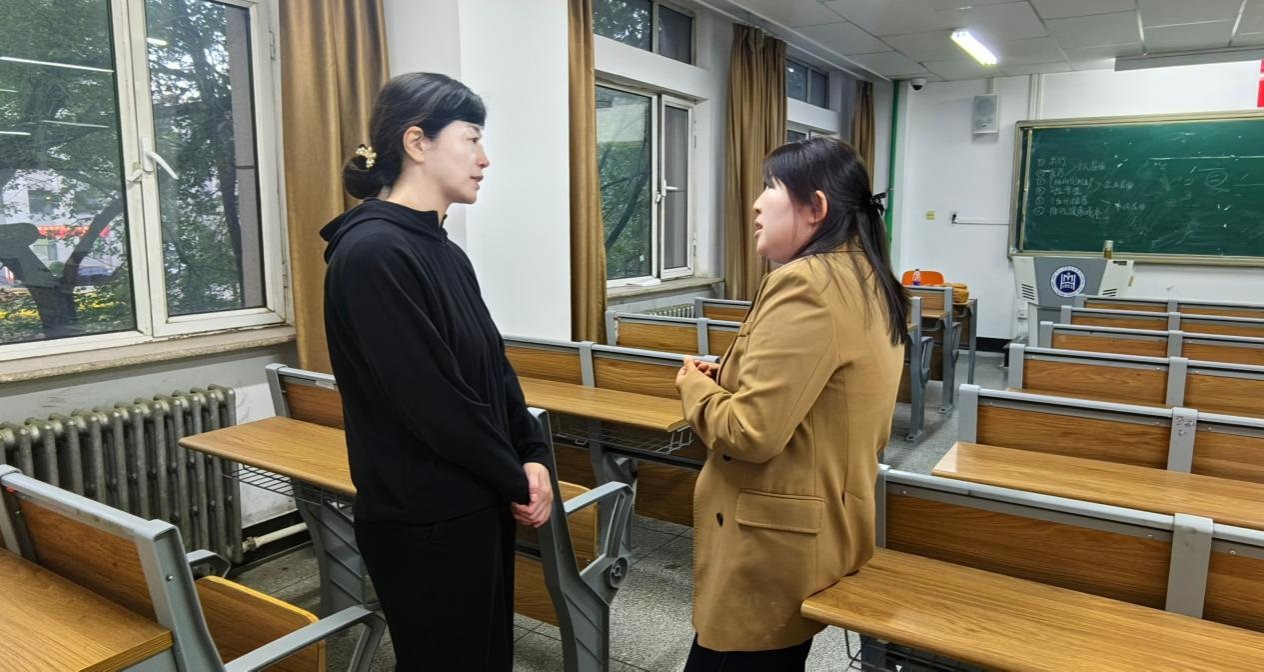 课间,王敏与两位教师进行了交流,她对两位教师在教学状态、教学准备、教学方式等方面的表现给予肯定,也在教学设计等方面提出了优化建议。她还与听课学生亲切沟通,了解他们的专业学习情况及对学校教育教学工作的意见建议。